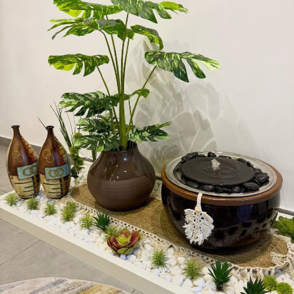 نافورة لحديقة داخلية صممت (بشكل يدوي وفني وبقطع محدوده وغير مكررة) لمساحات تحت الدرج تم تصميمها علي النمط العصري الحديث بتدرجات ألوان البني الرائعة الهادئه